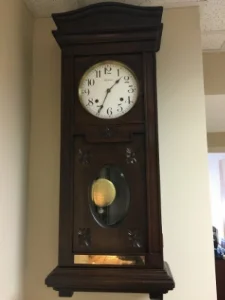 - A clock (pictured above) that was given to the church a long time ago was found and it is now working and hung in the office.
